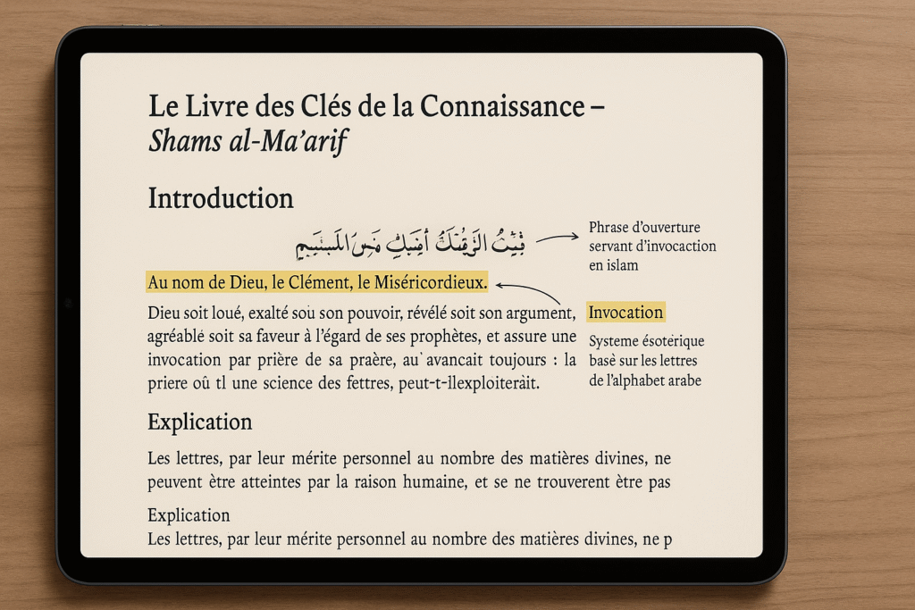 Pour répondre à cette demande, nous avons conçu une version PDF complète du Shams al-Ma’arif, spécialement adaptée aux lecteurs francophones modernes. Cette version comprend :